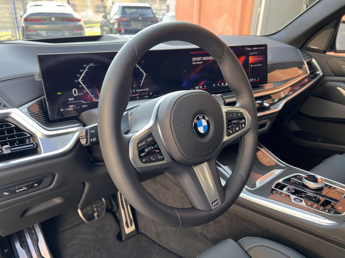 Nový model 2024, Nové vozidlo, BMW Garance+, Opravárenský BMW servis +3 roky/200.000km, Bezplatný servis BMW Inclusive 5let/100.000km, 7mi místná verze, xDrive pohon 4x4, barva: BMW Brooklyn Grey metallic, Interiér: Exclusive M Leder Tartufo black (perforovaná), Lišty interiéru M Carbon Fibre, M-PRO Paket, Adaptivní vzduchový podvozek (2osé vzduchové odpružení), Aktivní řízení, Adaptivní LED světlomety, LED zadní světlomety, Komfortní sedačky M-Sport Individual el. stavitelné s f. memory (el. odvětrávané), Harman/Kardon Surround Soundsystem, Komf. 4-zónová klima, M-Aerodynamic Paket, Connected Drive Service, Driving Assistent, Bezklíčové odemykání a startování, Soft-Close, El. víko zavazadlového prostoru, Navigace DVD Professional s velkou barevnou obrazovkou (dotyková) nový software a zobrazení, Hlídání jízdního pruhu a mrtvého úhlu, Parkovací systém vč. Parkovací kamery 360° (3D), Přední parkovací kamera, M-Sportovní volant s řazením (vyhřívaný), Panoramatická střecha, Vyhřívané sedačky (4x), Litá kola BMW M R22 typ.742M, Swarovski Design interiér, Iconic Glow - Led přední maska, Ambiente Air Paket, APS, Asistent dálkových světel, Alarm aj.
